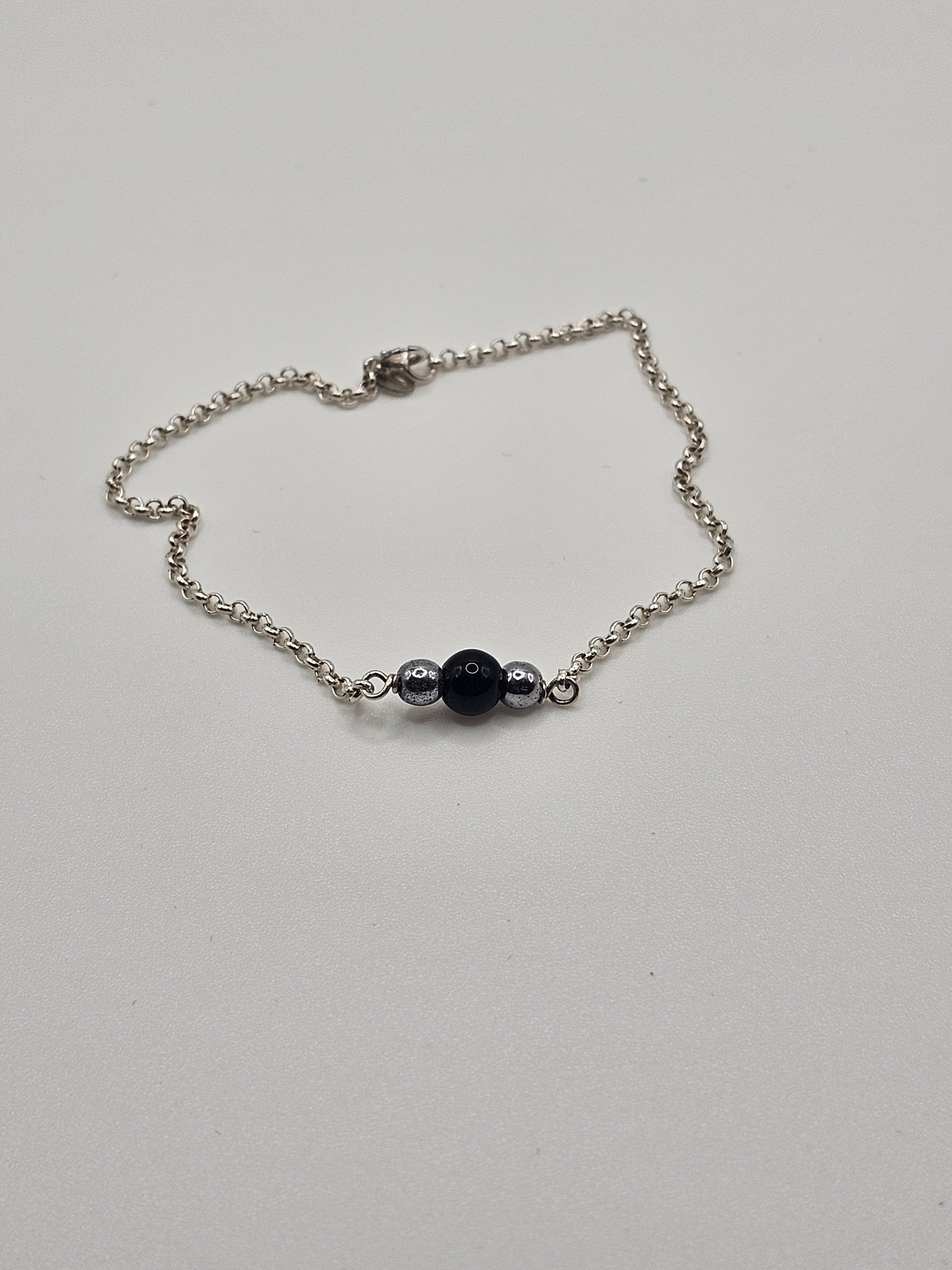 Crafted from 925 silver and Blue black onyxe stone, this bracelet channels calm strength and refined edge. Each bead carries a story of balance and focus, anchored in a minimalist double-chain design. Handcrafted for men who move with intention—and never without style.